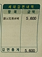 총 5,600원을 에너지캐쉬백 명목으로 감면받았습니다.
