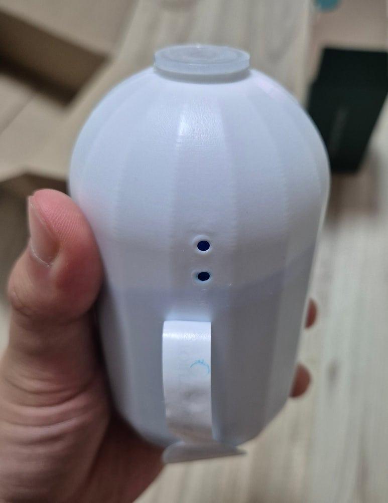 스티커를 제거하면 아래와 같이 세정제가 나오는 구멍이 존재합니다.