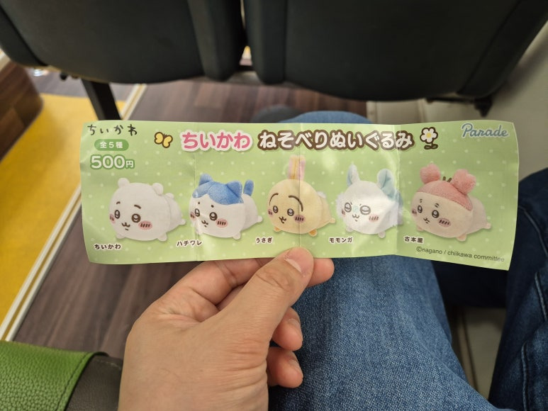 설명서를 펼치니 치이카와 캐릭터 5마리가 나옵니다. 가격은 500엔이라고 되어 있네요.