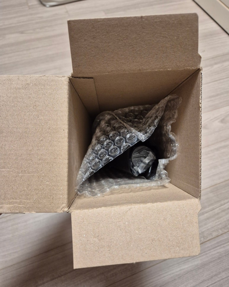 박스를 열어보니 뽁뽁이 속에 검정 양우산이 보입니다.