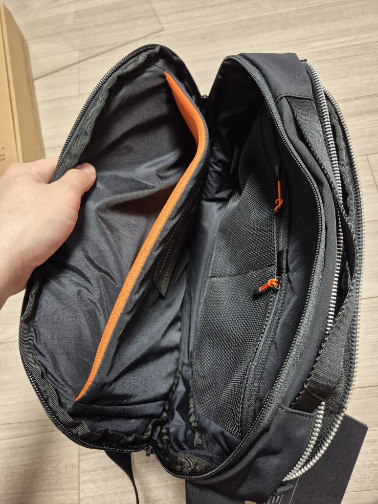 출퇴근할 때 지하철에 사람이 많아 백팩이 불편할 때가 있어서 슬링백으로 마련했습니다.