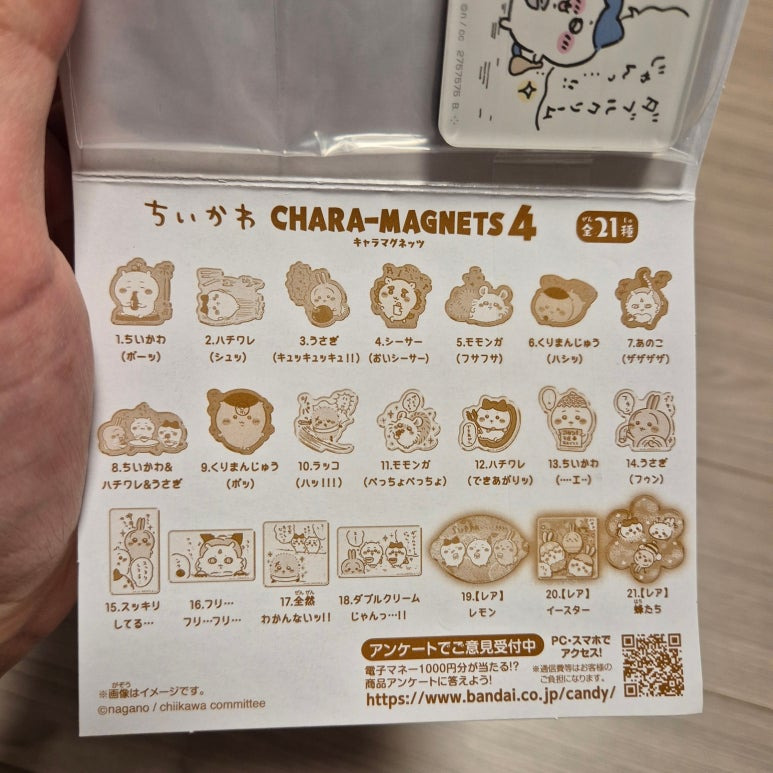 포장 좌측 상단에는 먼작귀 치이카와 마그넷 4의 라인업 21개가 프린트되어 있습니다.