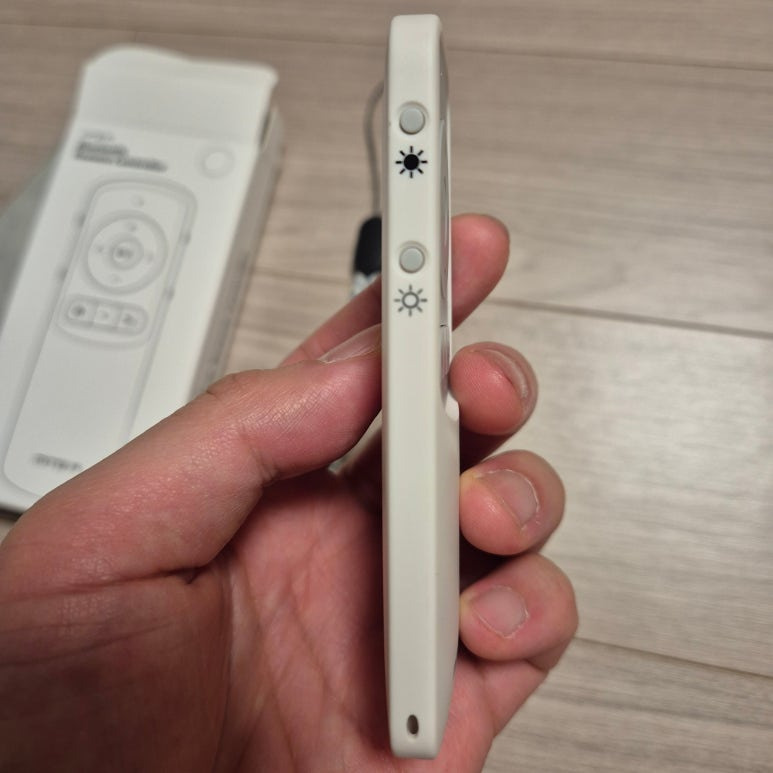 미테르 이북 리더기 리모콘 상자의 옆모습입니다.