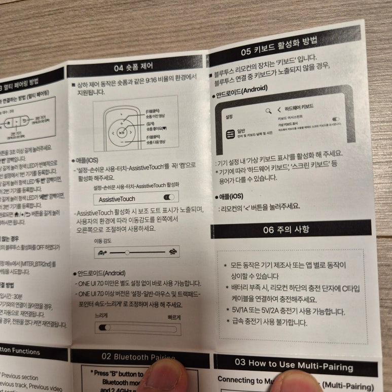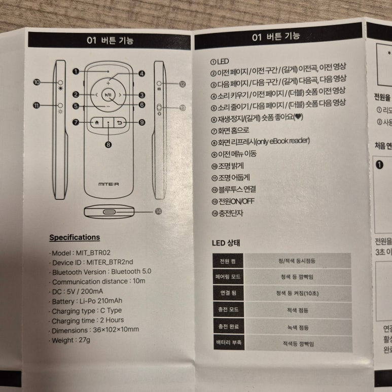 아래는 미테르 이북 리더기 리모콘 설명서의 전체 사진입니다.