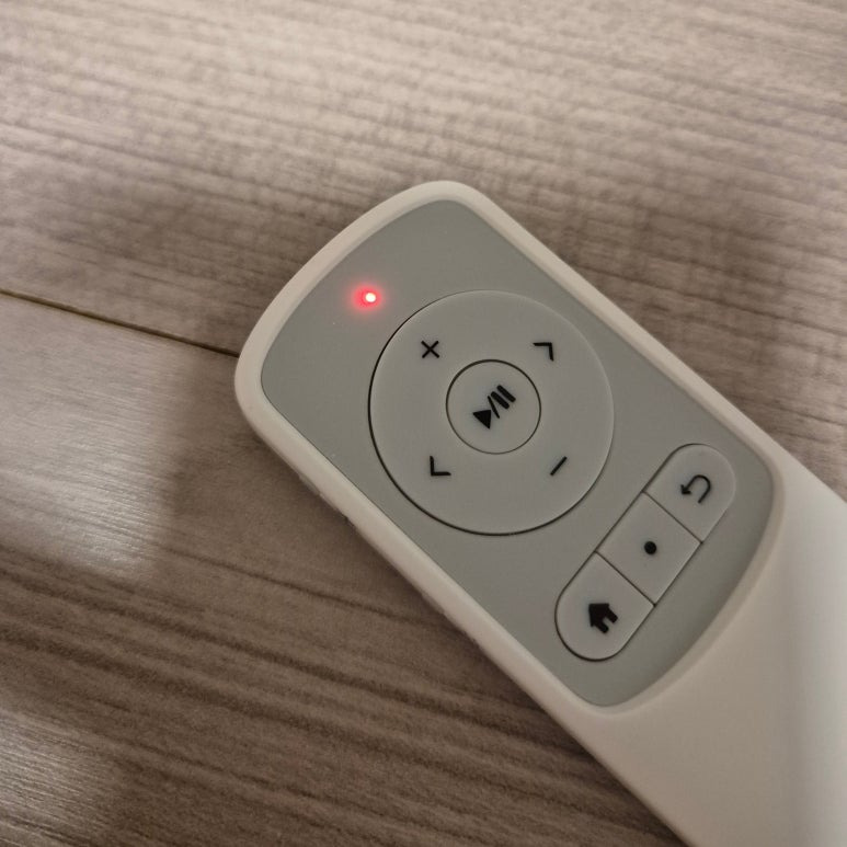 리모콘 상단에 빨간색 불이 들어와 있네요. 완충 되면 초록색이 됩니다.