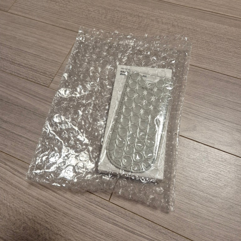 택배 포장 비닐을 뜯었습니다. 투명 뽁뽁이에 미테르 이북 리더기 리모콘과 케이스가 동봉 되어 있네요.