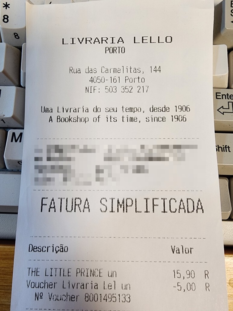 영수증에 LIVRARIA LELLO PORTO라고 기재되어 있습니다.